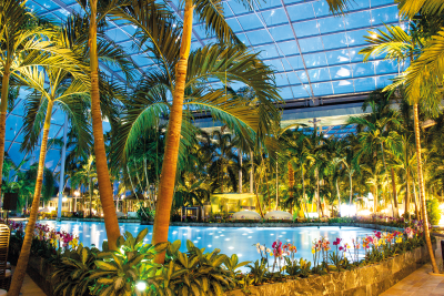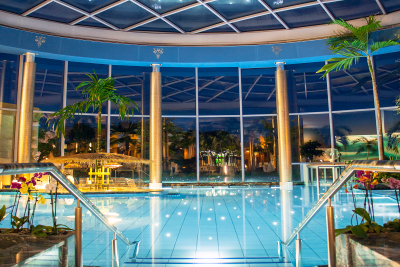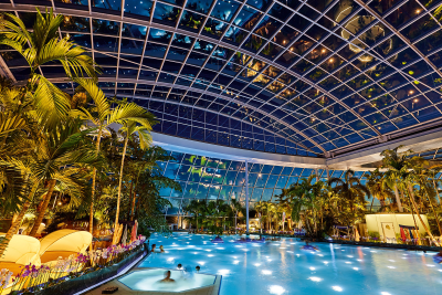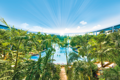 Entdecke die Therme Euskirchen. Mit der Panoramaansicht (360° Tour) erkunde das Palmenparadies, die Vitaltherme & Sauna, den Sandstrand Paradise Beach sowie viele weitere Entspannungsplätze unter Palmen.