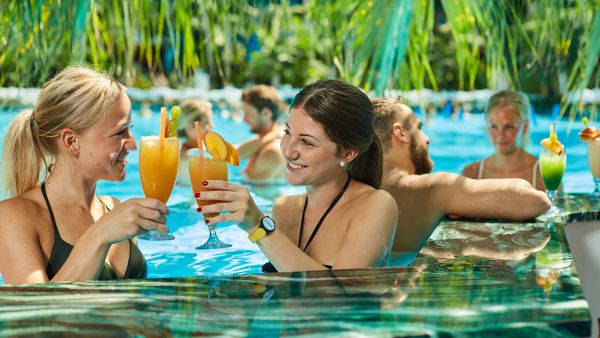 Erfrische dich mit einem lecker-fruchtigen Cocktail, genieße deinen Softdrink oder eine Kaffeespezialität an der Poolbar. Direkt im Wasser prostest du dich zu und entdeckst Drinks in ungewöhnlich-schönem Ambiente.
