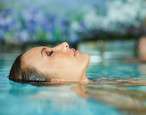 Gleite durchs Wasser und lasse dich von der Südseeströmung treiben. Erlebe das Schwebe-Gefühl, das dich durchs warme Wasser führt. Leicht und entspannend – mit Blick auf den Vitalgarten und unseren Natursee mit seinen Wasserfontänen.