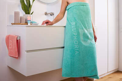 Der kuschelweiche Wohlfühlmoment für zu Hause oder in der Therme – das mintfarbene BLUPHORIA Badetuch fühlt sich angenehm weich an und ist der perfekte Begleiter für deine Wellness-Routine zu Hause.