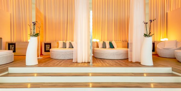 Mache es dir auf deiner Ruheinsel bequem oder entspanne auf dem gemütlichen Lounge-Sessel und genieße exklusive Wohlfühlmomente. Ein eigener Kühlschrank hält 1 prickelnde Fl. Champagner (Laurent-Perrier Cuvée), 2 Fl. Wasser sowie 2 BLUPHORIA Power Drinks und ein BLUPHORIA Little Lotus Set für dich bereit.