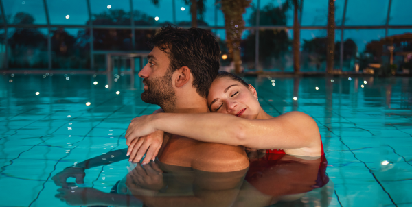 Ein Paar im Wasser bei Nacht