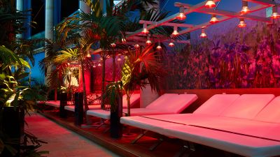 Erlebe eine paradiesische Zeit auf unseren bequemen Relaxliegen, Relaxmuscheln und unseren Lounges in der Vitaltherme & Sauna. Entspanne nach einem Saunagang auf deinem privaten Liegeplatz unter Palmen.