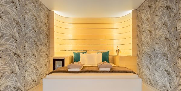 Make yourself comfortable on your quiet island or relax on comfortable lounge chairs and enjoy exclusive feel-good moments. A private refrigerator holds 1 sparkling fl. of champagne (Laurent-Perrier Cuvée), 2 fl. of water as well as 2 Bluphoria Power Drinks ready for you.